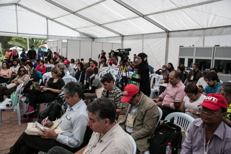 A tunisiana Lilia Rabay falou sobre o processo de iniciado no país em 14 de janeiro de 2011, da ampliação da massiva mobilização em torno das bandeiras de trabalho e dignidade e como a democracia tunisiana avança com a participação popular. Compuseram a mesa também a representante do Movimento Passe Livre, Letícia Cardoso, e o moçambicano Manuel do Rozário da Joint (articulação de ONGs de Moçambique), além de Liège Rocha, da União Brasileira de Mulheres, coordenando a mesa.