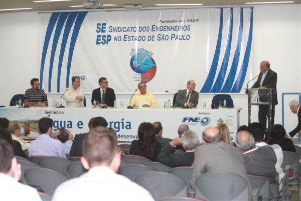 Na parte da manhã do segundo e último dia do semináriov;Água e energia – enfrentar a crise e buscar o desenvolvimento”, promovido pela Federação Nacional dos Engenheiros (FNE), nesta sexta-feira (13/3), na sede do SEESP, na Capital paulista, foi abordado o tema “Os desafios da crise hídrica”, com os palestrantes Newton Lima de Azevedo, governador pelo Brasil no Conselho Mundial da Água, João Alberto Viol, vice-presidente de Gestão e Assuntos Institucionais do Sindicato Nacional das Empresas de Arquitetura e Engenharia Consultiva (Sinaenco), e João Sérgio Cordeiro, coordenador e docente em Saneamento e Gestão Ambiental na Universidade Federal de São Carlos (UFSCar) e no Instituto Superior de Inovação e Tecnologia (Isitec).