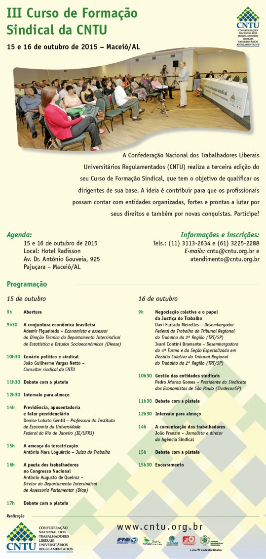 Confira a programação no folder do III Curso de Formação Sindical da CNTU