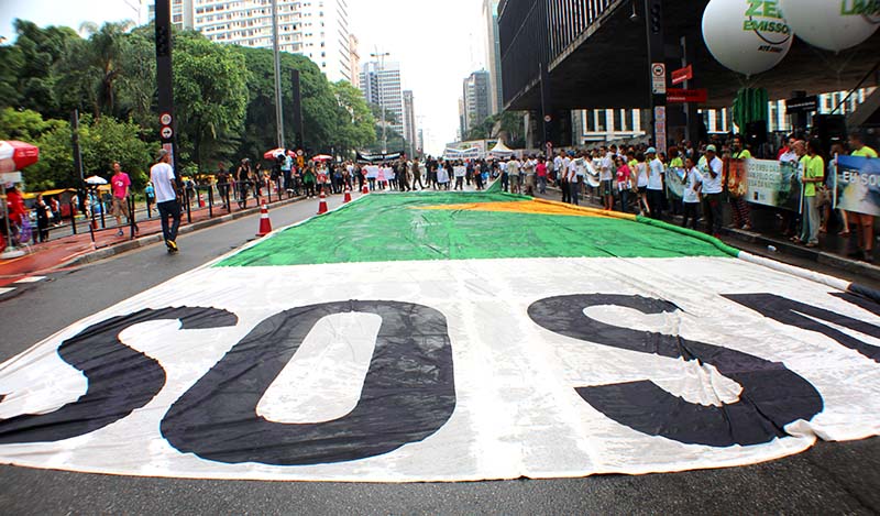 Mesmo com a forte chuva que caiu em São Paulo (SP), cerca de duas mil pessoas estiveram na Avenida Paulista, no domingo (29/11), para participarem da Marcha Global pelo clima, que antecedeu a 21º Convenção das Partes (COP21) das Nações Unidas sobre Mudança do Clima, que começa nesta segunda-feira (30) e vai até 11 de dezembro próximo, em Paris (França). O objetivo das mobilizações é pressionar os líderes dos governos a assinarem um pacto efetivo pela redução das emissões dos gases de efeito estufa. A CNTU, representada por seu diretor Ernane Rosas, presidente da Federação Interestadual dos Nutricionistas (Febran), e coordenador do Departamento de Alimentação da Confederação, marcou presença na marcha de São Paulo.