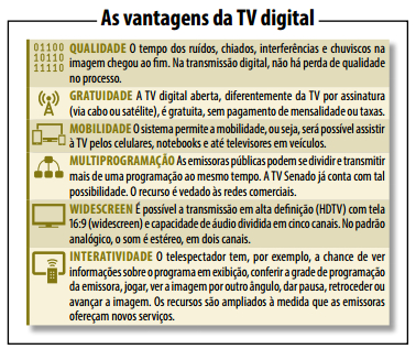 Um dos meios de comunicação mais populares do país está passando por uma revolução tecnológica. Até o fim de 2018, o sinal analógico da TV aberta será desligado nas capitais e principais cidades do interior do país. Com isso, a maior parte dos brasileiros vai entrar numa nova era da televisão, a digital, com qualidade superior de imagem e de som, e recursos como a multiprogramação.