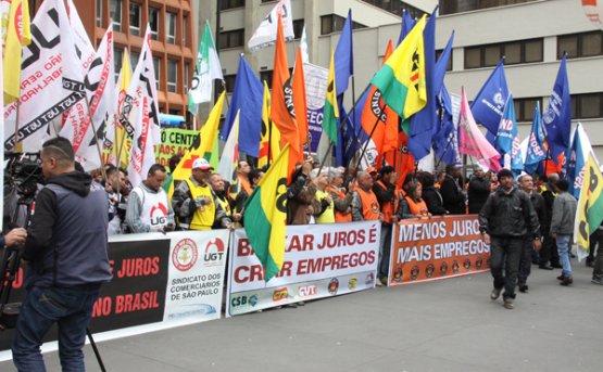 As CUT, Força Sindical, UGT, Nova Central, CSB e CTB reuniram na manhã desta terça (19) dirigentes e ativistas de várias categorias profissionais em protesto contra o atual patamar dos juros, fixados em 14,25% há um ano. A manifestação ocorreu em frente à sede do Banco Central, na avenida Paulista, na região central de São Paulo.
