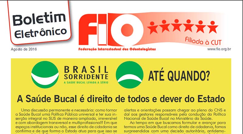 O boletim de agosto de 2016 da Federação Interestadual dos Odontologistas (FIO) já está no ar.