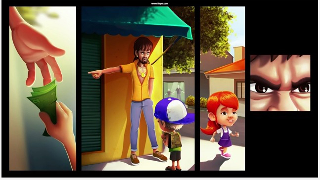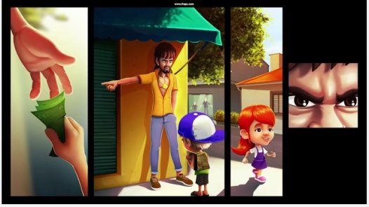 Ao longo da história, as crianças precisam enfrentar o vilão, que oferece álcool e cigarros e ainda obriga o personagem a vender drogas. O jogador precisa desviar de obstáculos e coletar itens para avançar.