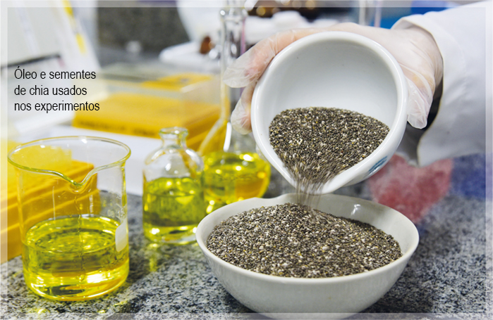 “Deixamos todas as dietas com o mesmo teor de energia e substituímos a quantidade de óleo comum de soja, pelo óleo de chia ou semente de chia. A quantidade de fibra ficou igual para todos os animais e, da mesma forma, o teor lipídico e energético ficou semelhante”.