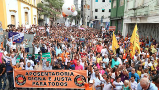 O protesto foi marcado por críticas à reforma neoliberal proposta por Temer, principalmente quanto ao item que impõe a idade mínima de 65 anos para que homens e mulheres possam ter acesso à aposentadoria, à regra dos 49 anos de contribuição para receber o benefício integral, além do fim do acúmulo de benefícios, entre outros.