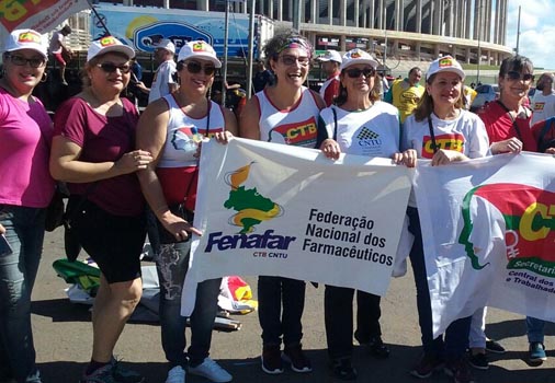 A manifestação aconteceu nesta quarta-feira, 24 de maio, na capital federal. A vice-presidente da CNTU e diretora da Fenafar, Gilda Almeida, participou.