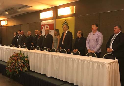 A posse da nova diretoria da Federação Interestadual dos Odontologistas (FIO), na noite do dia 2 de junho último, em Fortaleza (CE), foi prestigiada por dirigentes de diversas entidades e autoridades de todo o País. Pela segunda vez o cirurgião-dentista José Carrijo Brom será o presidente da entidade pelo próximo triênio 2017/2020. A eleição foi no dia 4 de abril último. Carrijo exerce a profissão na cidade de Goiânia (GO) e é diretor e ex-presidente do Sindicato dos Odontologistas do estado de Goiás (Soego) e também dirigente da CNTU.