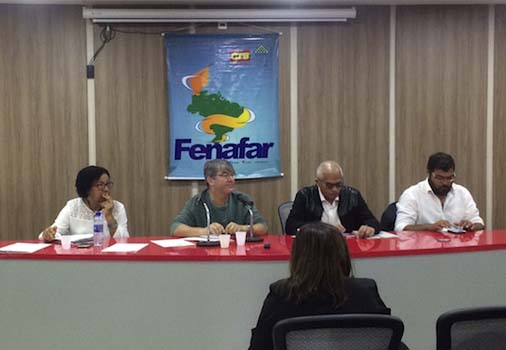 Ronald Ferreria dos Santos, presidente da Fenafar, encerrou a parte dos debates para lembrar que o golpe está articulado em torno da desestruturação do pacto social selado em 1988 com a aprovação da Constituição Federal. Que é preciso reunir forçar para buscar uma bandeira de unidade que mobilize os trabalhadores a defender a Constituição e enfrentar o golpe em curso no País.