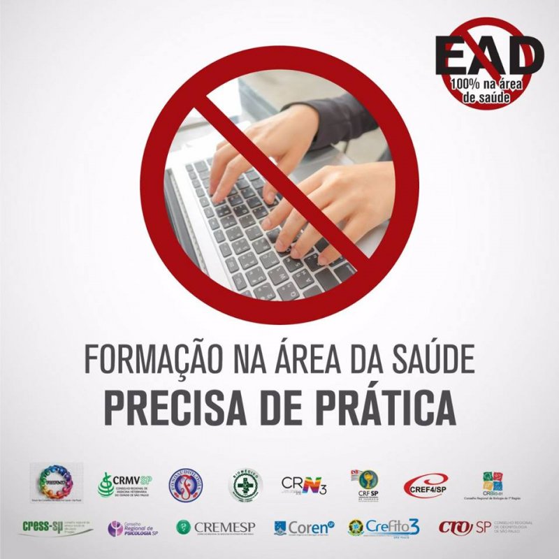 “O Sinesp também diz NÃO a educação à distância na área da saúde”. É o que diz postagens recentes do sindicato nas redes sociais, em apoio ao Conselho Federal de Nutricionistas, que divulgou uma carta aberta à sociedade, assinada pelo Fórum dos Conselhos Federais da Área da Saúde (FCFAS), que representa 14 profissões do setor, expondo a opinião de todos os Conselhos Profissionais da Área da Saúde, que se manifestam totalmente contrários a proposta do Governo Federal, via Ministério da Educação, de incentivar cursos superiores na forma de Ensino a Distância (EAD) para a formação dos profissionais.