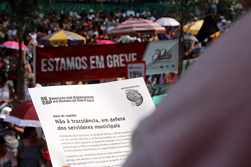 O ato dos servidores ontem (20) também reuniu milhares. Os sindicatos das categorias estimam que pelo menos 80 mil ocupavam o entorno da Câmara. Enquanto lá fora se escutava o protesto, o presidente da Casa, Milton Leite, anunciou, durante a reunião do Colégio de Líderes, dentro da Câmara, que o PL não seria votado nesta semana, em nenhuma das 21 sessões extraordinárias marcadas para ocorrer entre terça e hoje(21).