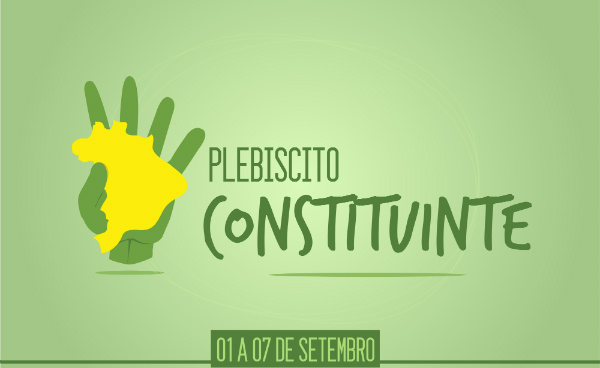 Durante esta Semana da Pátria (de 1º a 7 de setembro) mais de 400 organizações sociais estarão nas ruas para coletar os votos para o Plebiscito Popular para Uma Constituinte Exclusiva e Soberana com objetivo de alcançar a tão desejada reforma do sistema político do País. A meta é conseguir 10 milhões de votos para o Plebiscito Popular por uma Constituinte Exclusiva e Soberana do Sistema Político. Votação também será online.