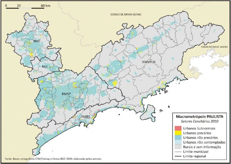 Um estudo realizado pelo Centro de Estudos da Metrópole (CEM) indica que 3,8 milhões de pessoas moravam, em 2010, em condições precárias nos 113 municípios da macrometrópole paulista – área de 31,5 mil quilômetros quadrados (km2) que engloba as regiões metropolitanas de São Paulo, Campinas, Baixada Santista, Vale do Paraíba e Litoral Norte, além da aglomeração urbana de Jundiaí.