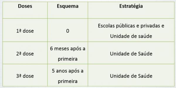 Para se imunizar é preciso apresentar o cartão de vacinação ou um documento de identificação. Cada adolescente deverá tomar três doses para completar o esquema de proteção, sendo a segunda aplicada depois de seis meses, e a última, cinco anos após a primeira.