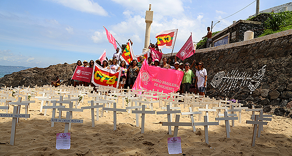 Elas fincaram nas areias da praia cerca de 200 cruzes e cada uma delas representando simbolicamente, uma das mulheres mortas na Bahia, nos últimos anos. Segundo Daniele Costa, coordenadora estadual da UBM, a bandeira pelo fim da violência ainda necessita estar erguida, apesar das conquistas.